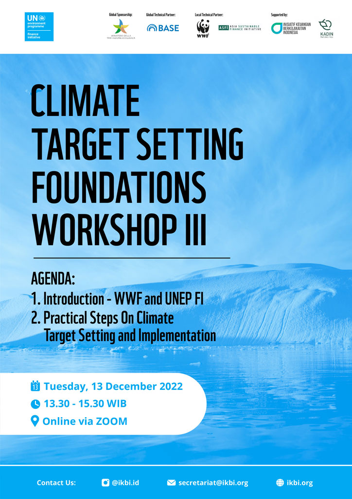 Climate Target Setting Foundations Workshop III + iCal / Outlook export The event is finished. Tags: BankIndonesia, G20, GreenFest, KeuanganBerkelanjutan, PeranAnakMudaDalamEkonomiRendahKarbon, SustainableFinanceWorkingGroup, TogetherPossible Date Dec 13 2022 Expired! Time 1:30 pm - 3:30 pm Location Online Via Zoom Share this event