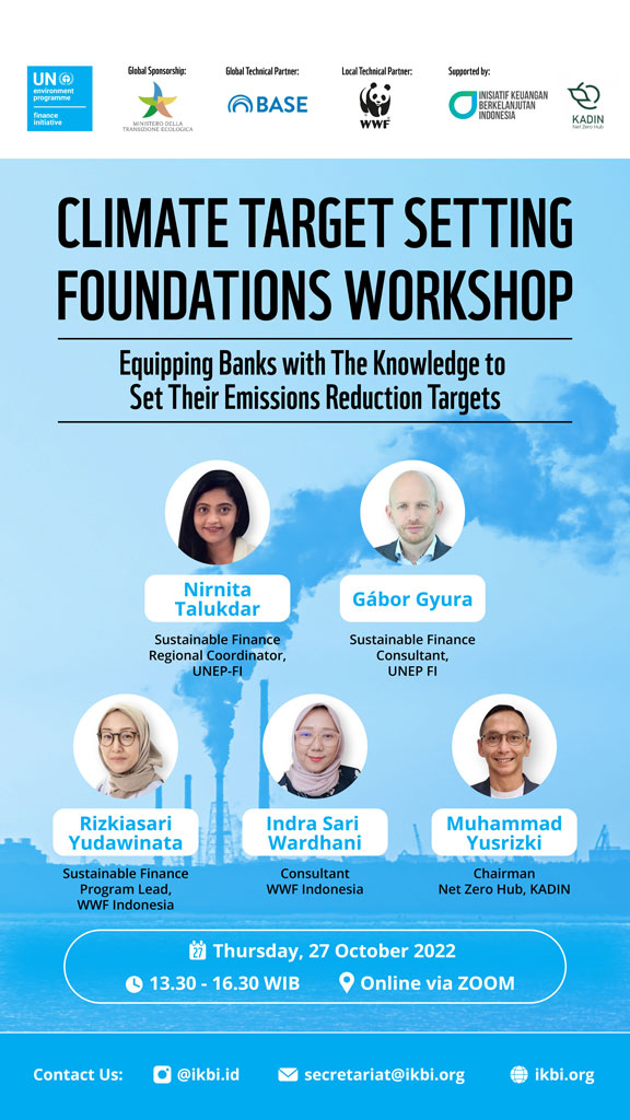 Climate Target Setting Foundations Workshop + iCal / Outlook export The event is finished. Tags: BankIndonesia, G20, GreenFest, KeuanganBerkelanjutan, PeranAnakMudaDalamEkonomiRendahKarbon, SustainableFinanceWorkingGroup, TogetherPossible Date Oct 27 2022 Expired! Time 1:30 pm - 4:30 pm Location Online Via Zoom Share this event